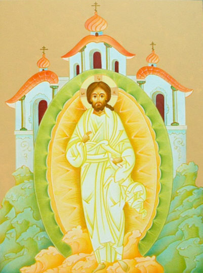 the highest holy days of the Eastern Orthodox Church. “This is my beloved Son: hear him” (Mark 9, 2-7). Jesus Christ, dressed in white, standing upon a cloud