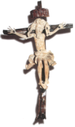 Friedhofes zu erkennen (Bild rechts) Die Botschaft des Steins:Die Mitte ist der Altar, ist Christus. Wie in einem Kreis um- stehen dieser Mitte die Lebenden, mit offenen und betenden Händen; die