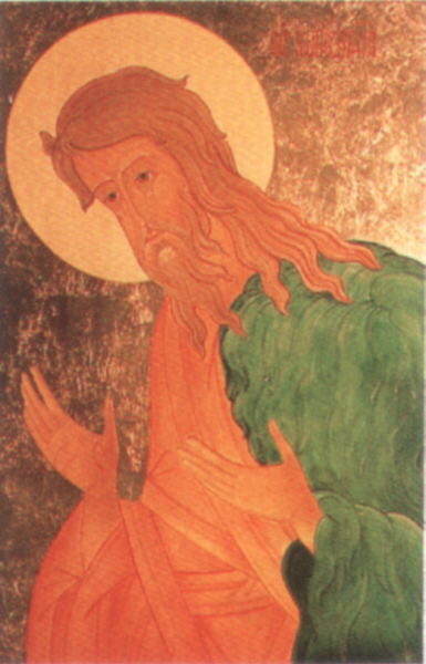 Axt (die an die Wurzel gelegt ist) und eine "Wurfschaufel dargestellt. Das wesentlichste Ereignis in seinem Leben: die Taufe des Sohnes Gottes, von Jesus Christus: "
